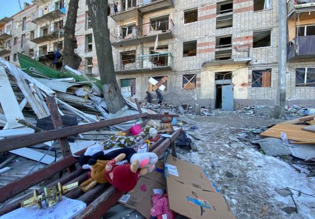 It adds that in Kharkiv, a Russian tank reportedly struck a car belonging to a family travelling with two children.