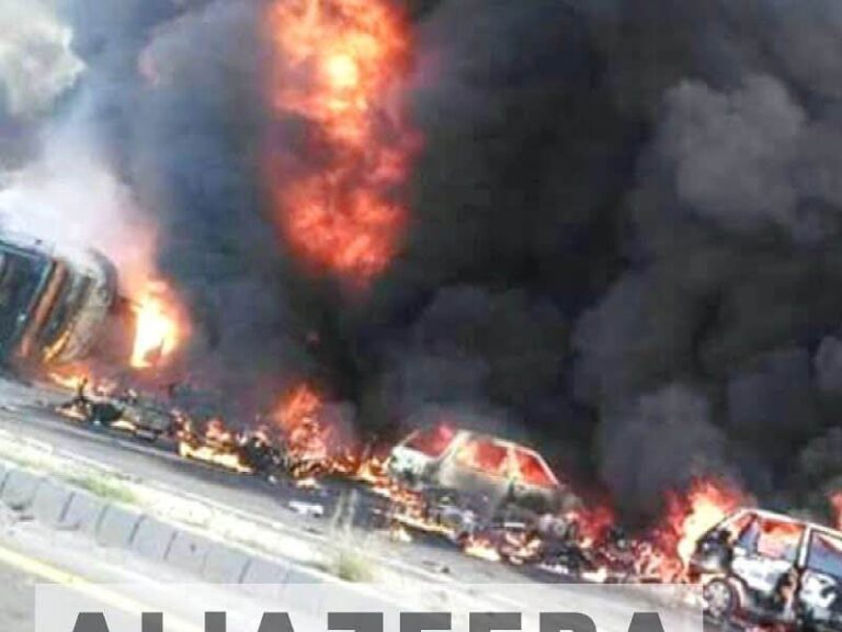 An oil tanker is on fire at Toyota bus stop along the Oshodi-Apapa expressway in Nigeria`s commercial capital Lagos.