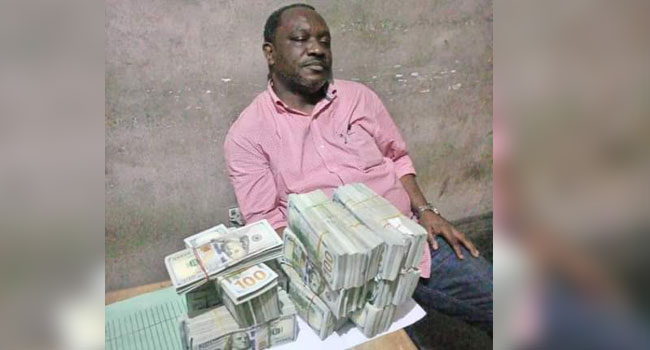 A Nigerian politician has been arrested for alleged money laundering after being caught with $498,100 (£414,000) in cash a day before general elections.