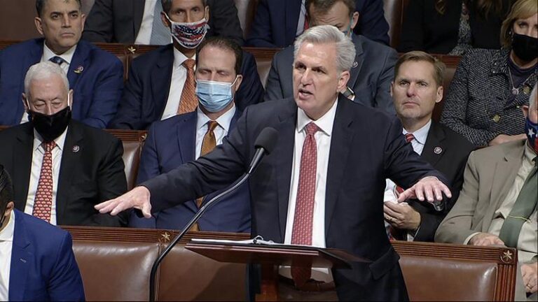 McCarthy spent more than eight hours on his feet, at times shouting or rasping hoarsely. Democrats sporadically booed and groaned as McCarthy glared back, underscoring partisan hostility only deepened by this week’s censure of Rep. Paul Gosar, R-Ariz., for threatening tweets aimed at Rep. Alexandria Ocasio-Cortez, D-N.Y.
