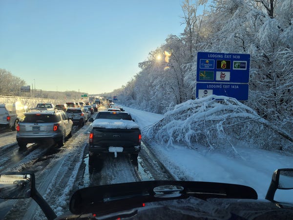 Video and images posted on social media showed the interstate has become a virtual parking lot.