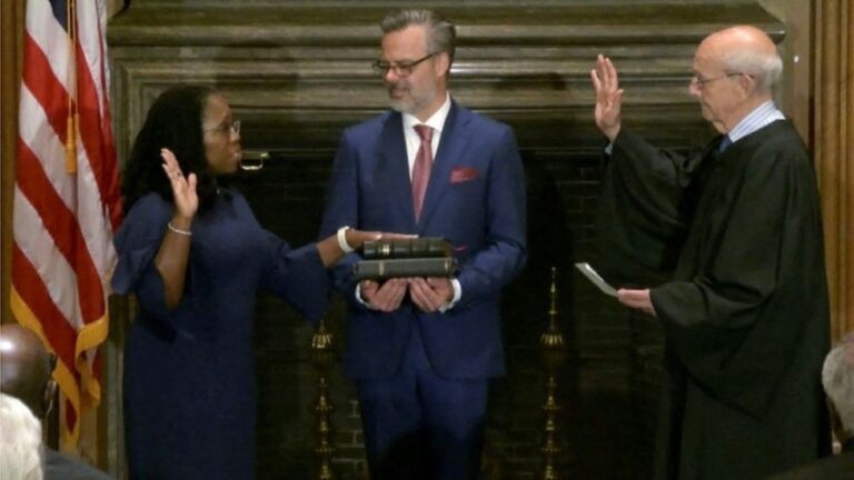 Ketanji Brown Jackson has been sworn in as the newest associate Supreme Court justice, becoming the first black woman to serve on the nation’s highest court.