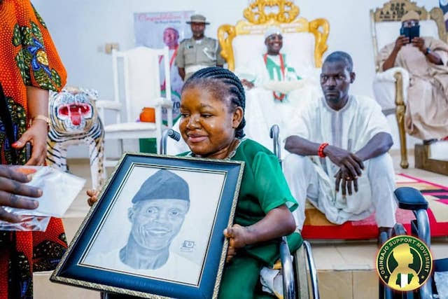 Vice President Yemi Osinbajo has offered a gifted disabled artist, Ms. Abosede Okeowo,  a US online scholarship to enhance her skills.