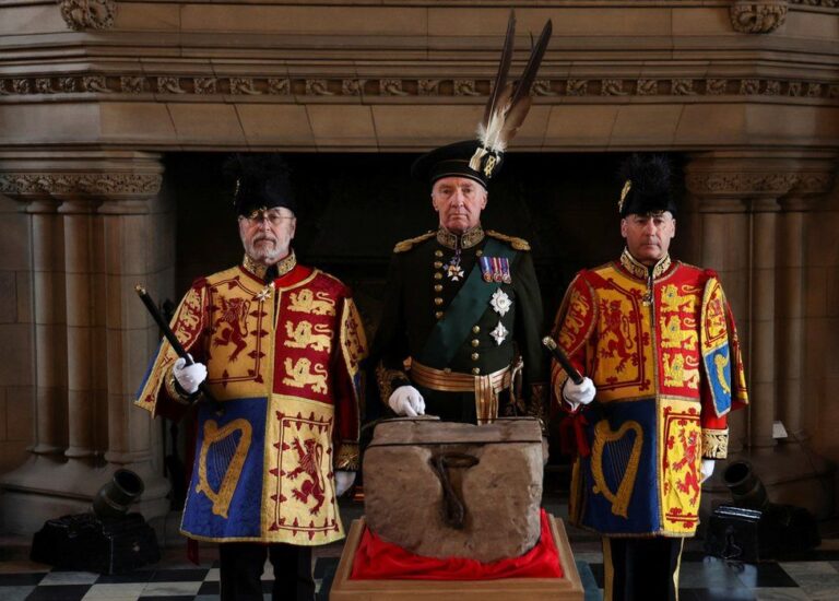 In preparation for its temporary departure to London, a ceremonial procession took place from the castle’s Great Hall, led by the Lord Lyon King of Arms – the monarch’s representative in Scotland.